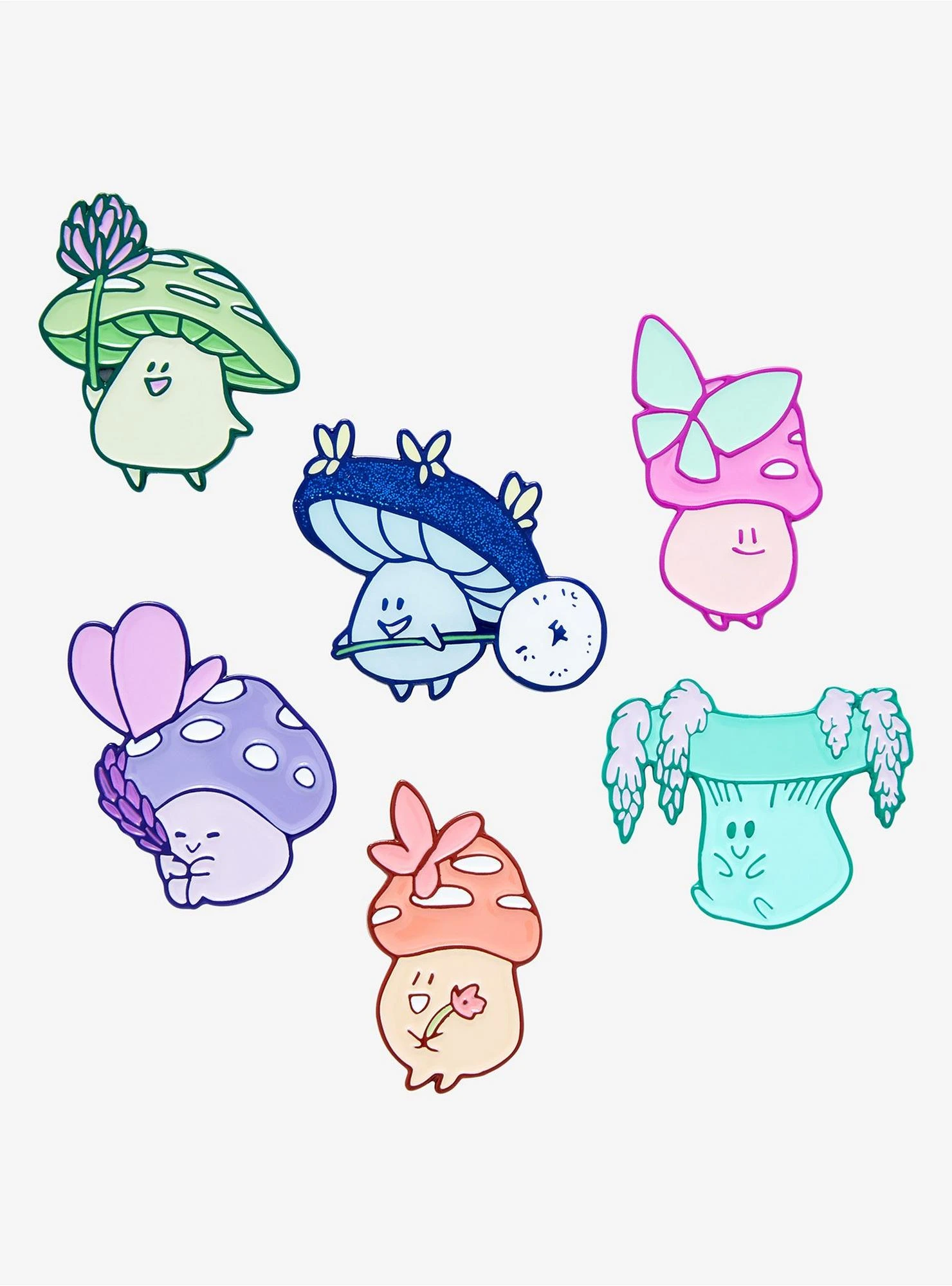 Celebrate the perfect pairing of nature’s most delightful elements with the BoxLunch Exclusive Friendly Fungi Floral Series 1. These enchanting enamel pins combine the earthy charm of mushrooms with the delicate beauty of flowers in soft pastel colorways. Designed to add a pop of cuteness to any accessory, these mystery pins are the perfect addition to your favorite jacket, bag, or cork board display.