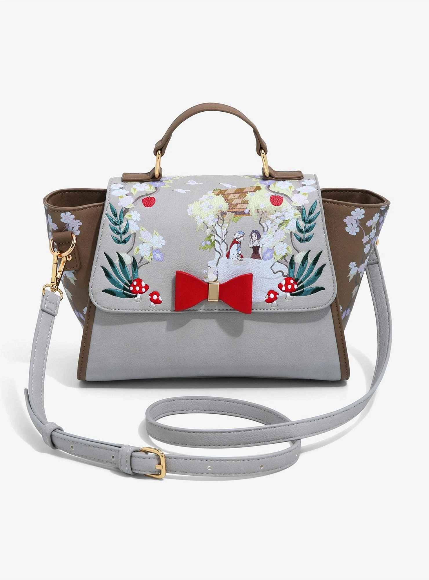 Accessorize like the fairest of them all with this enchanting convertible handbag inspired by the Disney classic, Snow White and the Seven Dwarfs. Featuring a whimsical graphic of Snow White and her Prince at the wishing well, this accessory brings the magic of the animated masterpiece to your everyday wardrobe. Whether you are wandering through the forest or heading to a royal engagement, this BoxLunch Exclusive piece ensures you do so in regal style.