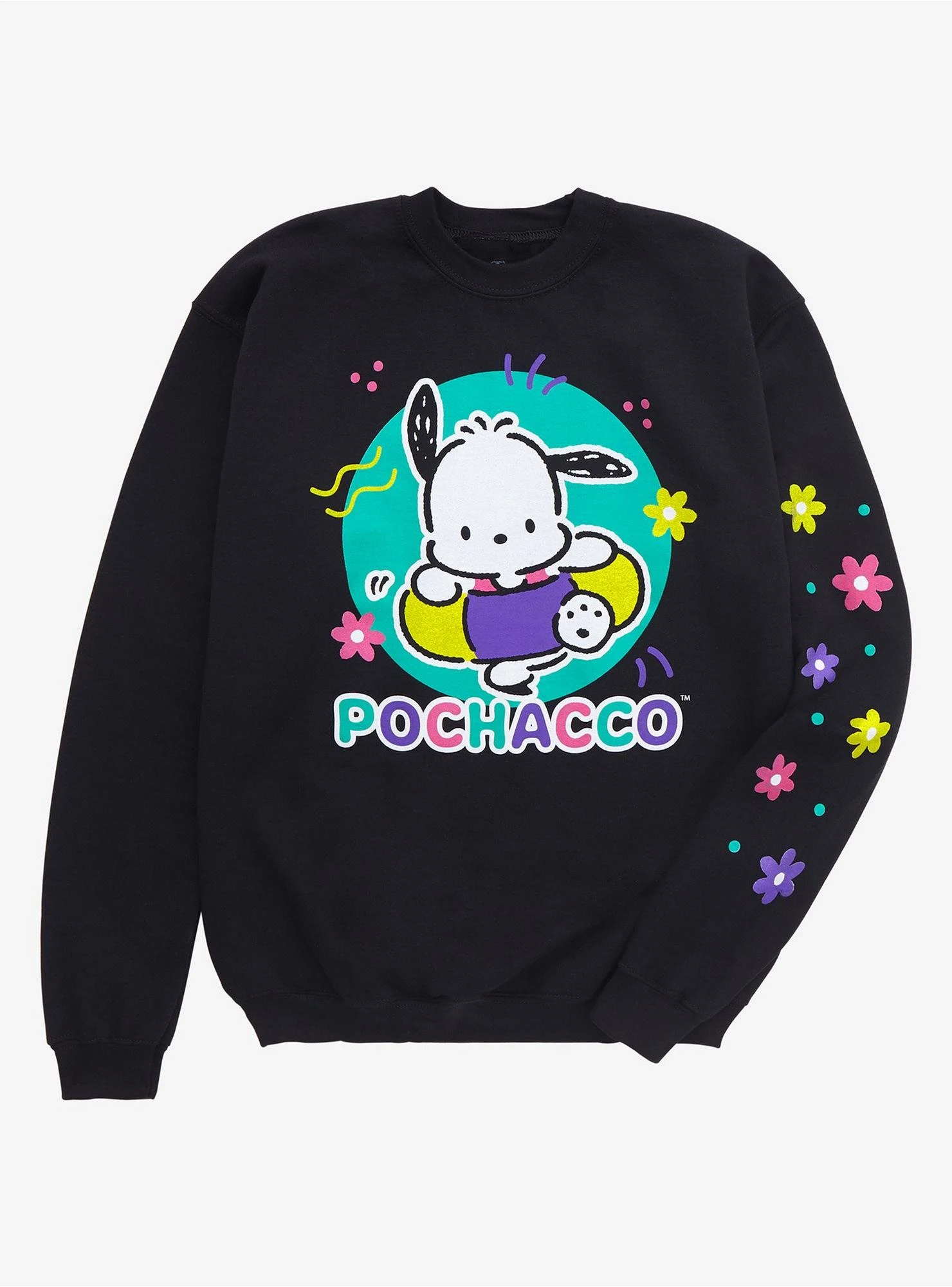 Bring the sunshine with you wherever you go with the Sanrio Pochacco Summer Floral Crewneck. This exclusive piece captures the essence of a perfect summer day, featuring everyone’s favorite athletic pup, Pochacco, ready for a pool party. Designed with vibrant graphics and a comfortable fit, it is the ultimate addition to any Sanrio fan’s collection.