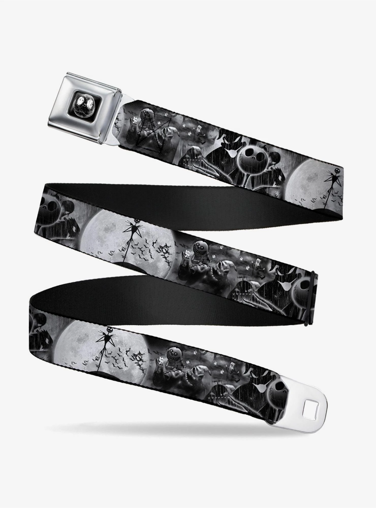 Bring the hauntingly fun spirit of Halloween Town to your everyday look with this officially licensed The Nightmare Before Christmas seatbelt belt. Featuring the iconic Pumpkin King, Jack Skellington, and the mischievous Oogie Boogie, this accessory is the perfect blend of Tim Burton’s gothic charm and practical street style.